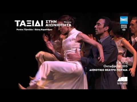 Το ονειρικό Ταξίδι στην αιωνιότητα, η επιτυχημένη παραγωγή του Μπαλέτου της Εθνικής Λυρικής Σκηνής, την οποία αγκάλιασε το κοινό της Αθήνας και της Θεσσαλονίκης, παρουσιάζεται για πρώτη φορά στο Δημοτικό Θέατρο Πειραιά, για τέσσερις μόνο παραστάσεις στις 7, 8, 11, 13 Οκτωβρίου 2015. Η ποιητική μουσική της Ελένης Καραΐνδρου, που έντυσε τις σπουδαίες ταινίες του Θόδωρου Αγγελόπουλου, δίνει αφορμή για ένα μαγικό ταξίδι σε χορογραφία του Ρενάτο Τζανέλλα. Με σύμμαχο τα κοστούμια και σκηνικά της Κατερίνας Αγγελοπούλου, η κίνηση των χορευτών της Εθνικής Λυρικής Σκηνής φέρνει στην μνήμη τις εικόνες και τους συμβολισμούς του οικουμενικού σινεμά του Αγγελόπουλου.