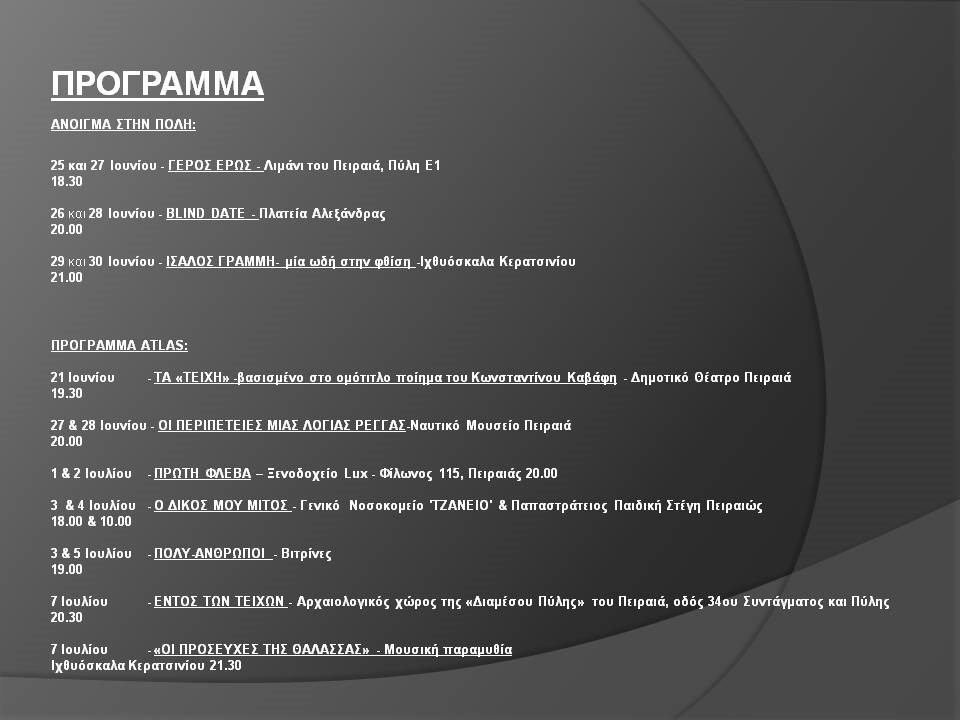 ΑΝΟΙΓΜΑ ΣΤΗΝ ΠΟΛΗ - ΦΕΣΤΙΒΑΛ ΑΤΛΑΣ