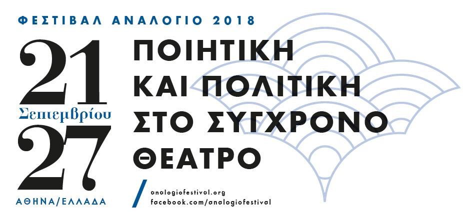 Το Φεστιβάλ Αναλόγιο, μέλος του οργανισμού EFA/EFFE (European Festivals Association/ Europe for Festivals- Festivals for Europe), ένας επιτυχημένος θεσμός αφιερωμένος στο θέατρο και στη σύγχρονη γραφή, δραματική και σκηνική, διοργανώνεται φέτος για 15η συνεχή χρονιά, από 21-27 Σεπτεμβρίου 2018.