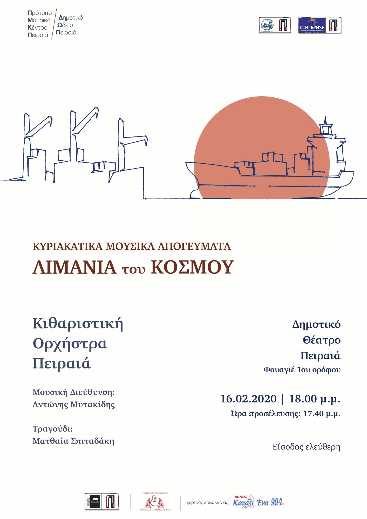 - Κυριακή 16 Φεβρουαρίου 2020, 18.00 μ.μ., Φουαγιέ Δημοτικού Θεάτρου Πειραιά