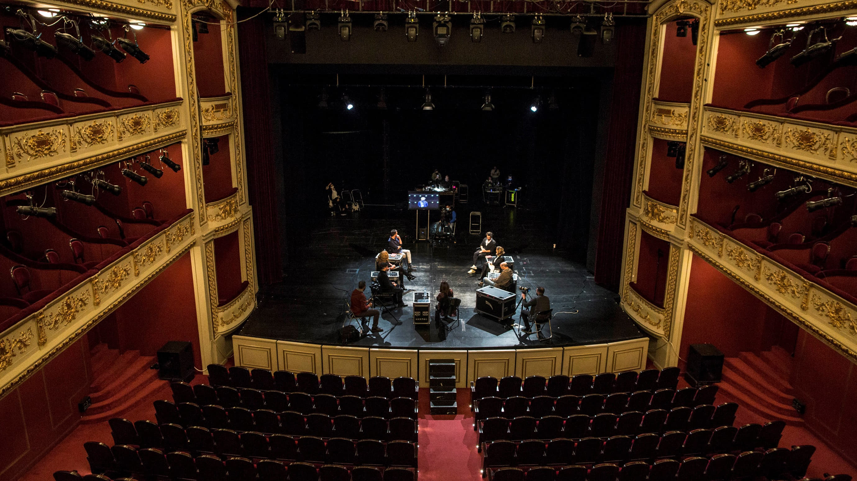 Άνθρωποι του θεάτρου συζητούν στην Κεντρική Σκηνή του Δημοτικού Θεάτρου Πειραιά