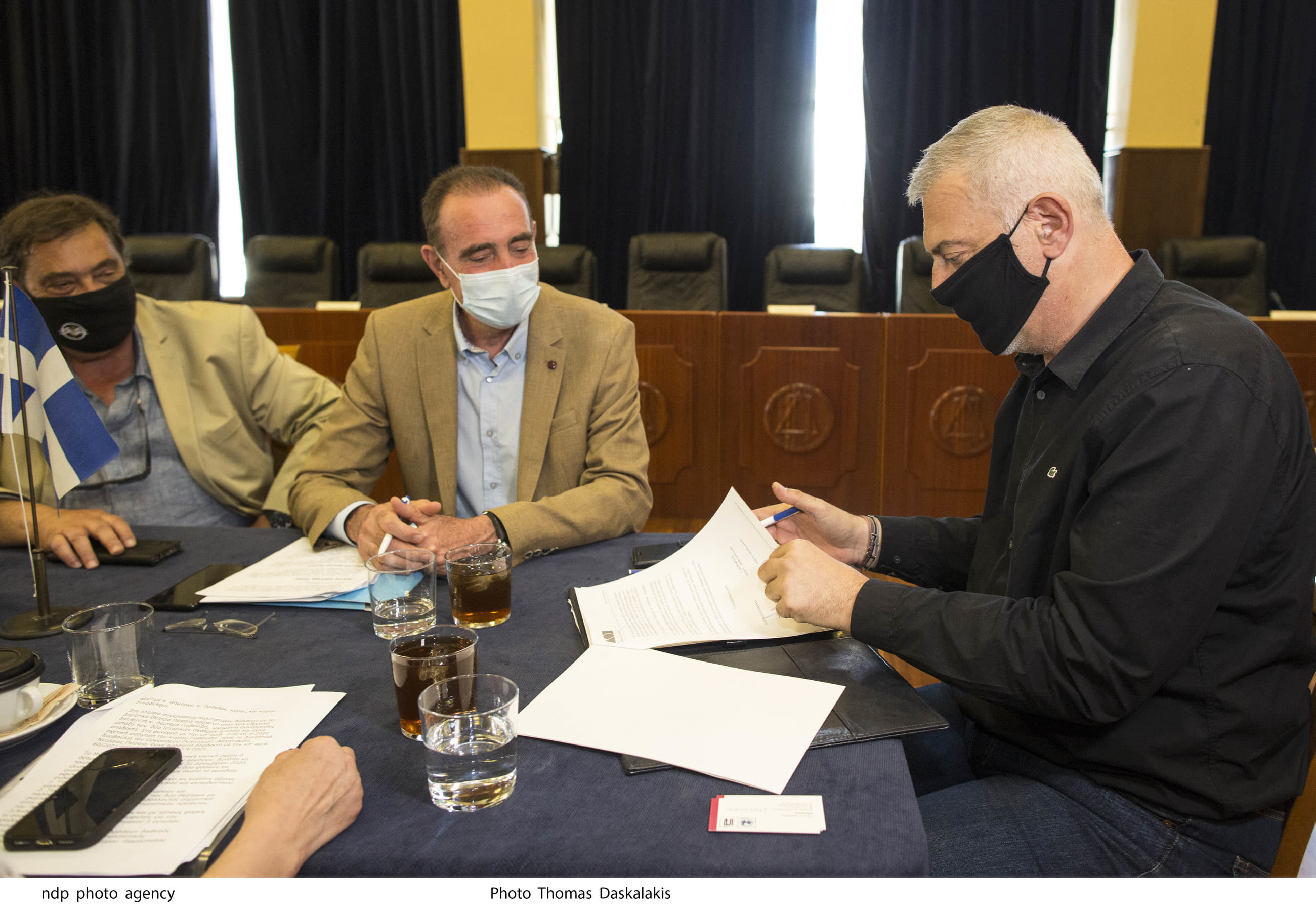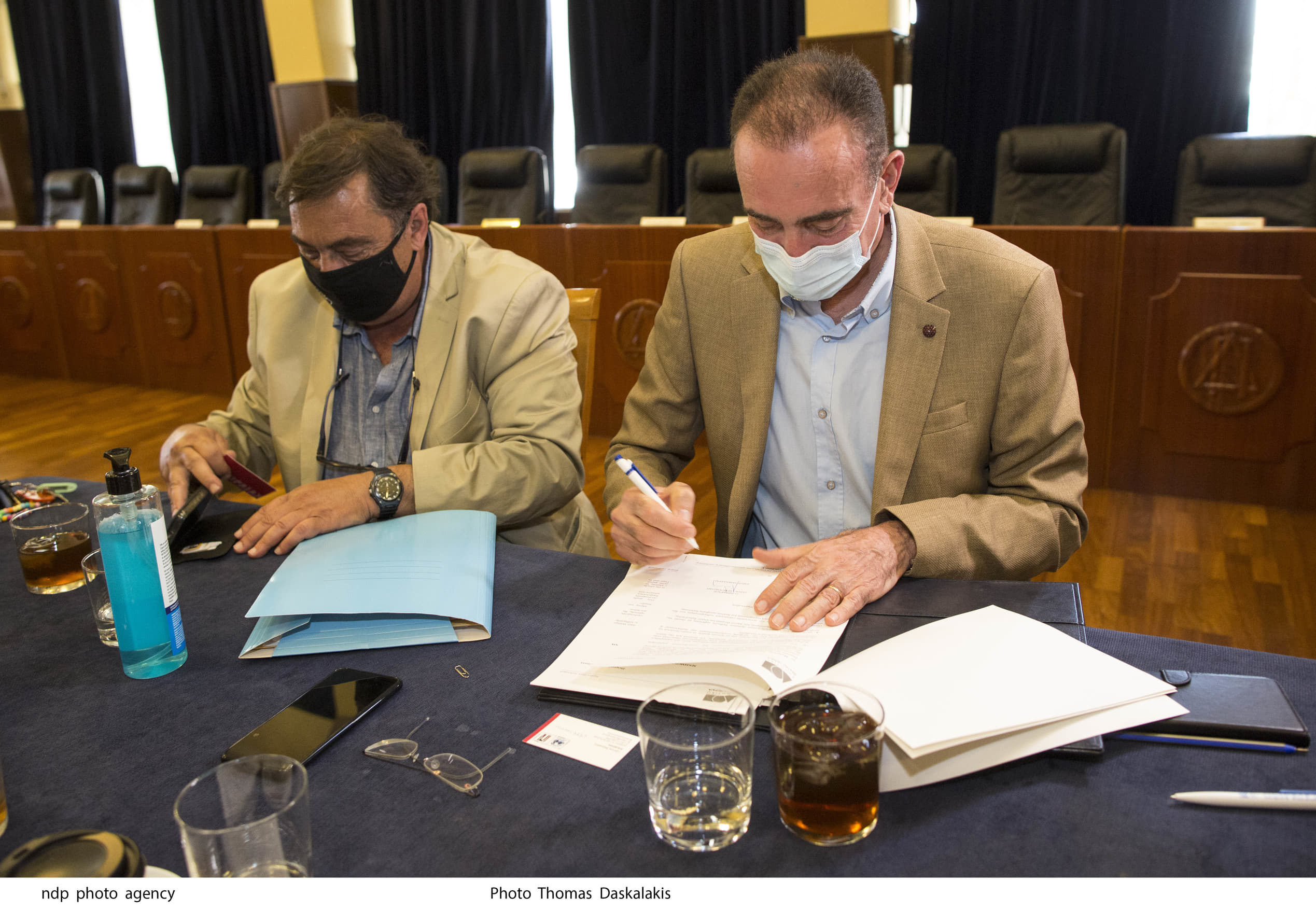 Στην τελετή υπογραφής παρευρέθηκαν: ο Πρόεδρος του Οργανισμού Πολιτισμού Αθλητισμού και Νεολαίας (Ο.Π.Α.Ν.) κ. Ιωσήφ Βουράκης, ο Καλλιτεχνικός Διευθυντής του Δημοτικού Θεάτρου Πειραιά κ. Λευτέρης Γιοβανίδης, οι Αντιδήμαρχοι του Δήμου Σύρου – Ερμούπολης, Πολιτισμού κα Αλίκη Λεονταρίτη, και Τεχνικών Έργων κ. Μηνάς Αλιφραγκής.